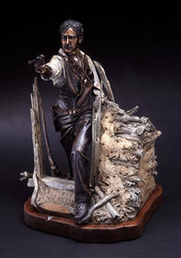 His meticulous attention to detail, coupled with an insightful grasp of the human experience resulted in exquisitely crafted and poignant bronzes. He quickly gained the acclaim of collectors around the country. Some of the public collections Muir’s work resides include: West Point Military Academy in New York, U.S. Cavalry Museum at Fort Riley, Booth Museum in Georgia, Birkenau Museum at Auschwitz, St. Louis University, Gettysburg Battlefield Museum, Vanguard University, GOW School, Pearce Western Art Museum, Sons of The American Revolution Headquarters, University of Arizona, Atlanta Historical Society, Paul Harvey News Broadcasting Headquarters, George W. Bush, Sr. office, and some of the most prominent private collections in America.